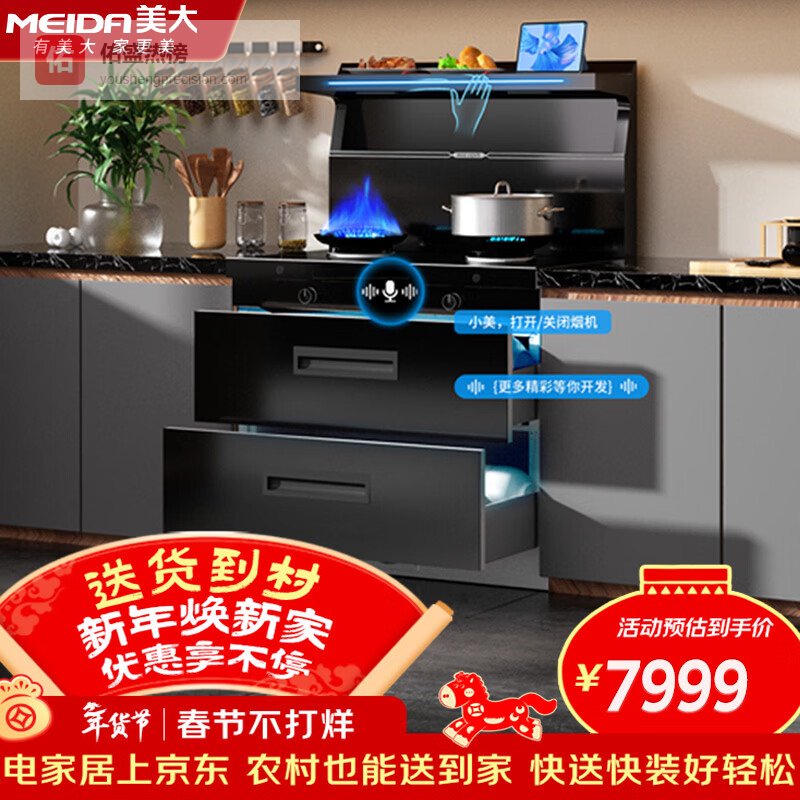 【京东自营】美大集成灶消毒柜款V9/T9-A集成一体灶智能双变频抽油烟机燃气灶钢化玻璃¥