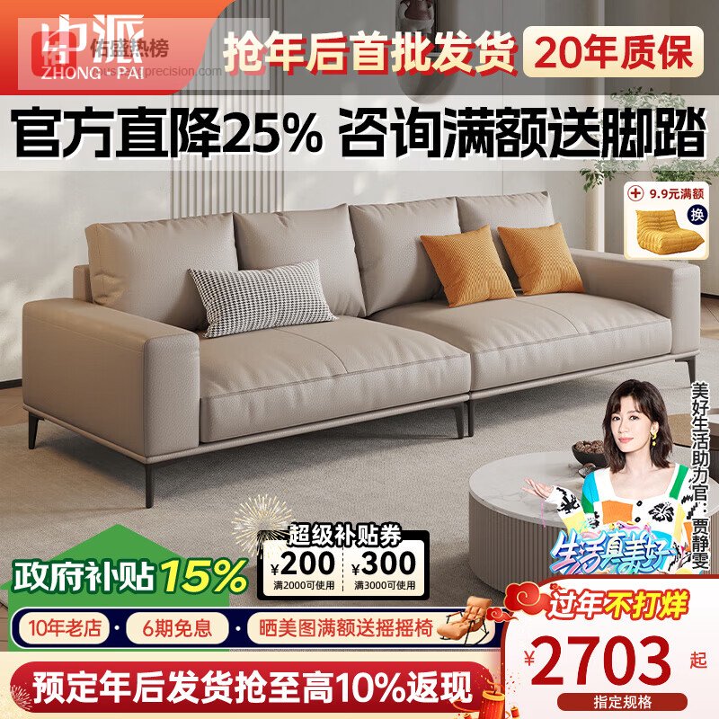 中派真皮沙发头层牛皮沙发客厅简约现代北欧轻奢直排沙发大小户型 3.2米直排大五人位 星选版【松木 小黄牛皮】¥