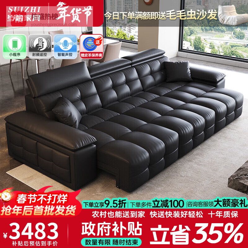 岁植功能沙发政府补贴沙发客厅2025新款极简劳伦斯真皮沙发电动沙发 2.9米四人位【三电机电动伸缩】 旗舰版【全包裹s 级加厚头层牛皮】¥