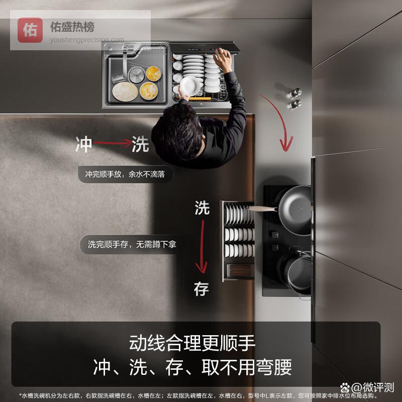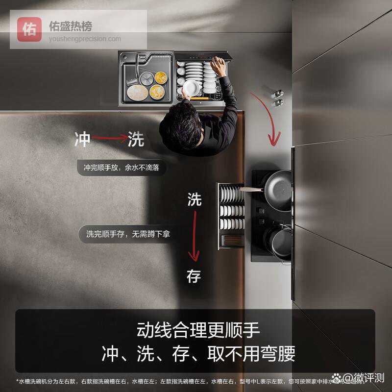 洗碗不弯腰设计:水槽式洗碗机符合人体工程学,减轻了洗碗时的身体负担,让清洗变得更加轻松愉快。