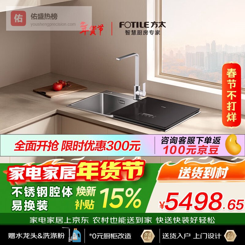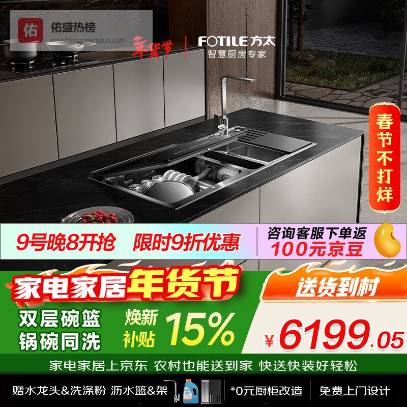 【京东自营】方太【水槽式洗碗机M1】大容量不锈钢槽体高能气泡洗100℃蒸汽除菌洗碗不弯腰洗果蔬去农残¥