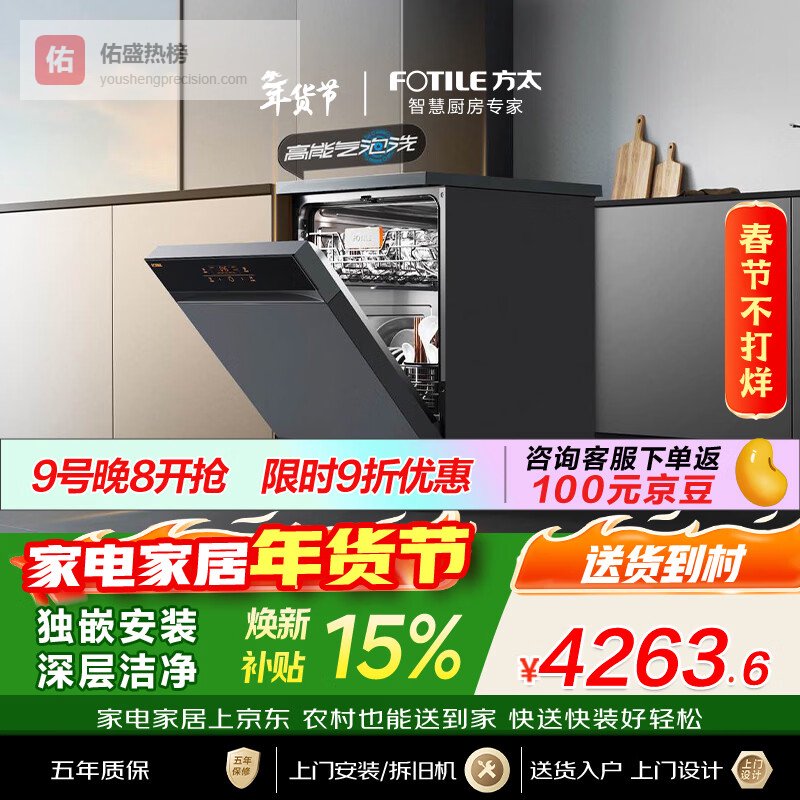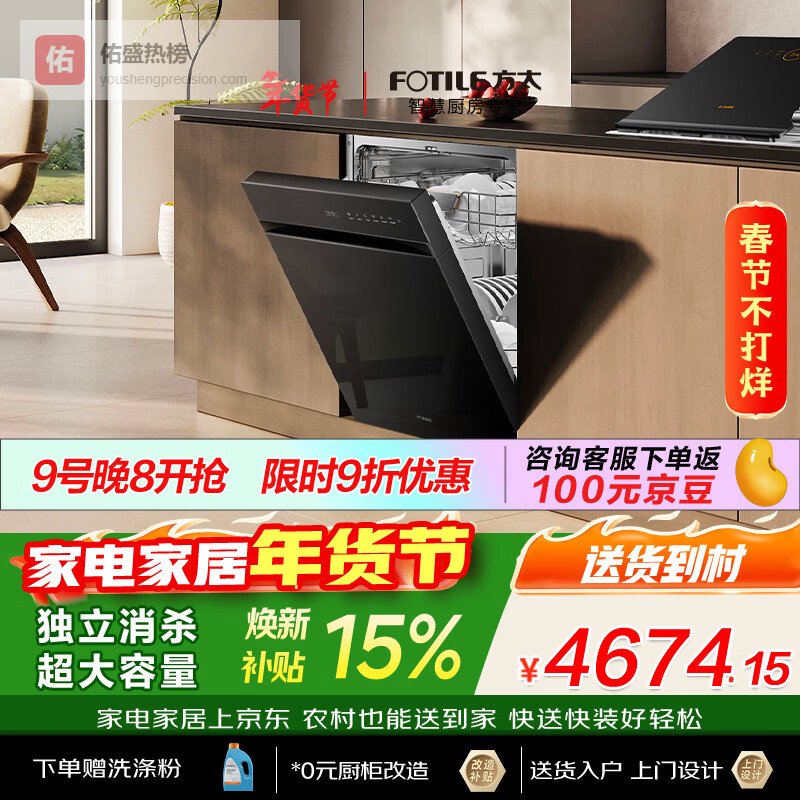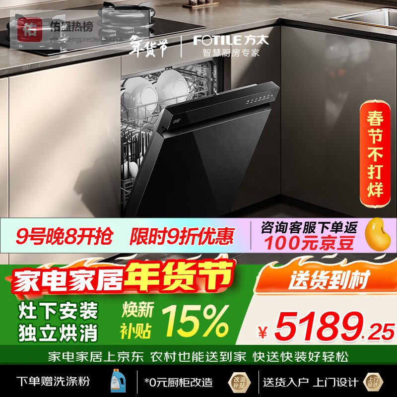 【京东自营】方太【嵌入式洗碗机V16】重磅新品熊猫系列全新升级150升以上超大容量100℃独立蒸汽消¥