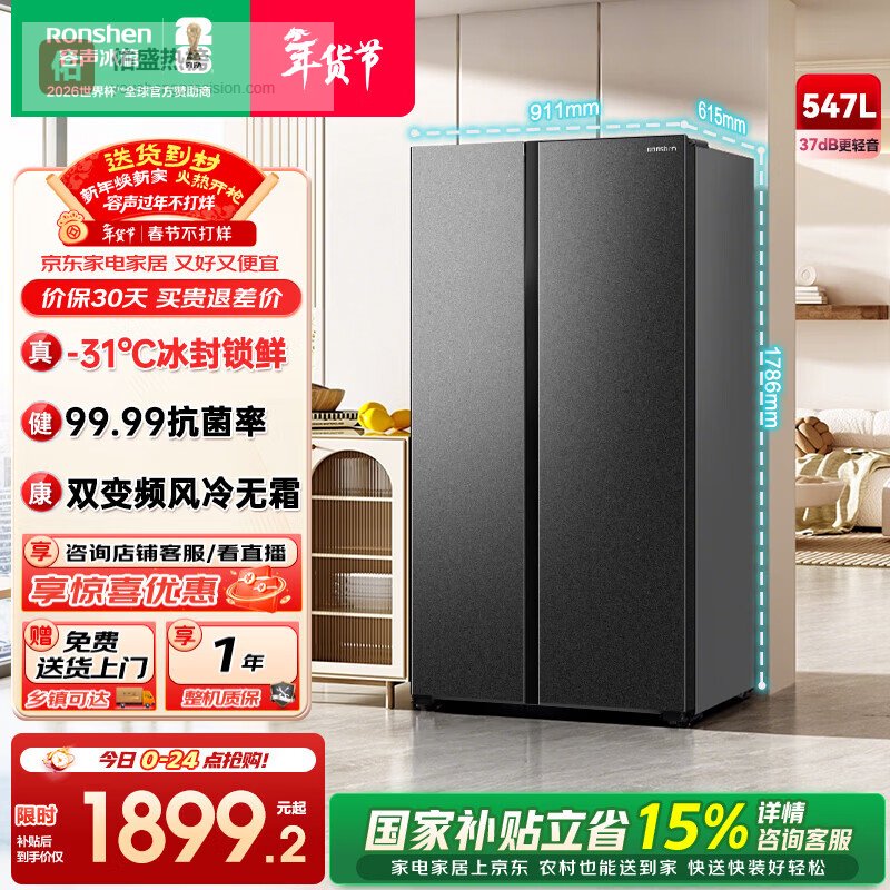 【大容量储存】这款容声冰箱总容量达到了547升,冷冻室就有201升,冷藏部分346升,基本满足一家人的储存需求。无论是大量冷冻肉类,还是丰富的水果蔬菜,都能一站搞定,空间大得还不错,家里的东西都能安排得舒服点。