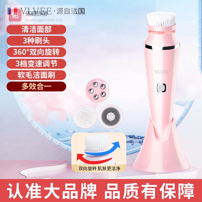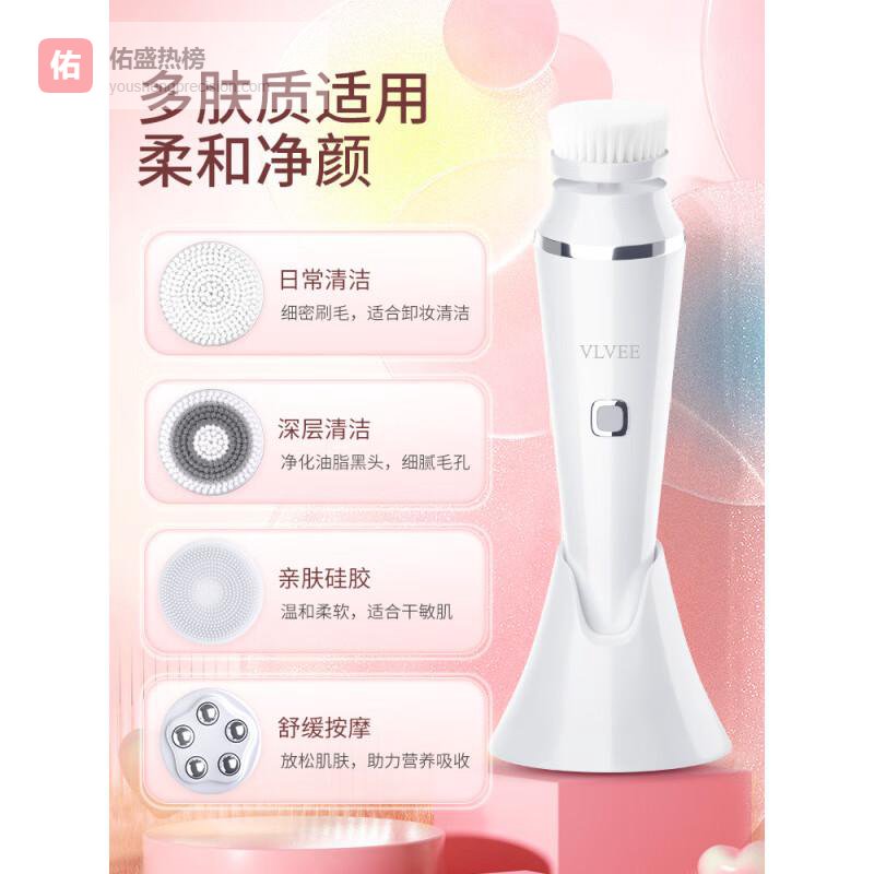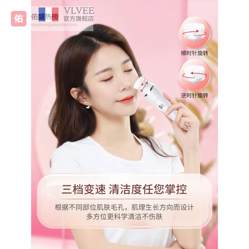 VLVEE法国VLVEE洗脸仪毛孔清洁器洁面仪女美容仪器家用脸部按摩仪电动少女粉¥
