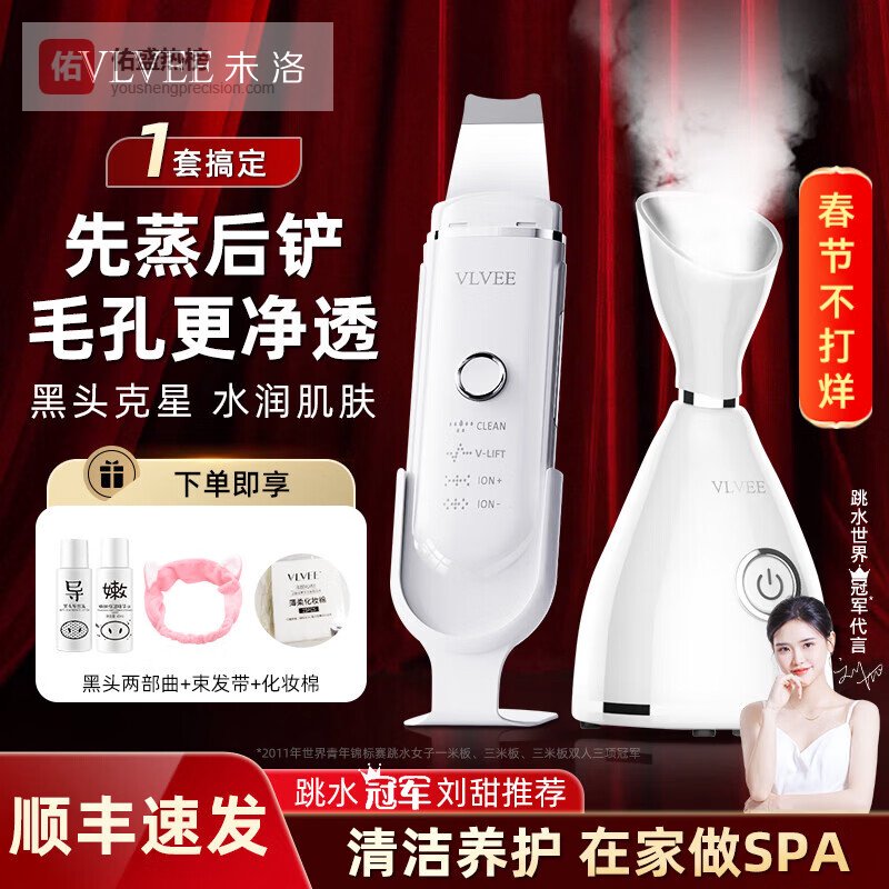 【品牌直营】VLVEE黑头铲超声波铲皮机去黑头吸黑头仪器毛孔清洁器粉刺闭口洁面仪家用离子导入导出电动¥