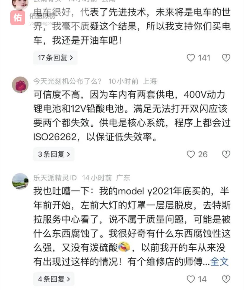 还有网友理性讨论,新能源汽车代表着行业发展趋势,绿色环保、用车成本低,是未来出行的主流方向,但技术成熟度和安全保障,必须跟上发展的脚步。也有人调侃,自己坚持开油车,就是怕遇到这种高速断电的致命风险。