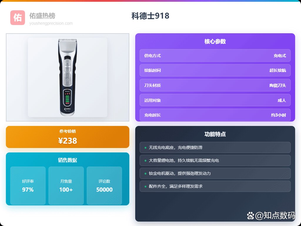 科德士918电动剃头刀剪头发推子理发器电推剪充电式专业发廊专用【年会奖品年货礼物】¥