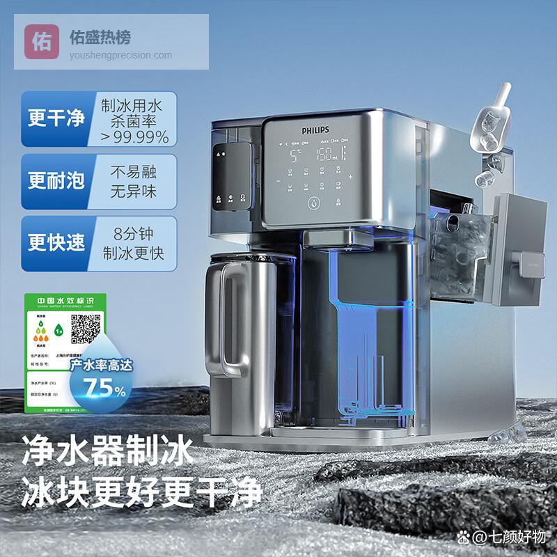 4、飞利浦冰境i1 pro这款飞利浦净水器具备多功能制冰和冷热水供应,可以快速制作细腻的冰沙和冰块,满足多样的饮品需求。它采用料理级螺旋刨冰技术,还能调节出2mm钻石冰沙的细腻口感,特别适合DIY冰品和食材冰镇。配合全能制冰技术,可以在不同温度之间切换,冰水、热水一应俱全,非常方便实用。