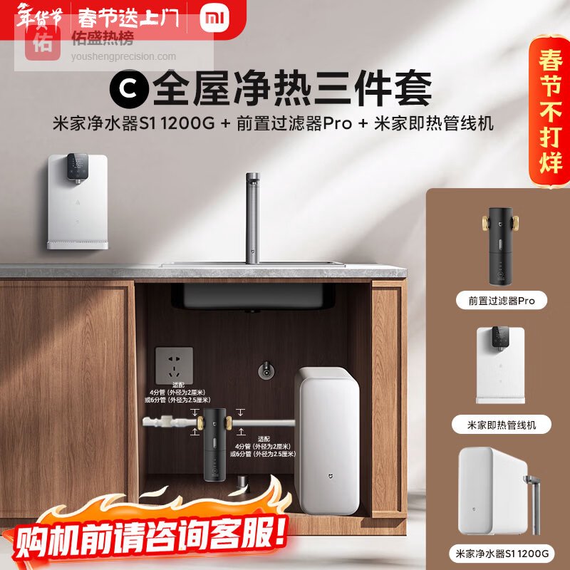 米家【净水+管线机+前置】】小米净水器S1 1200G+前置Pro+管线机 小米净水器套装C¥