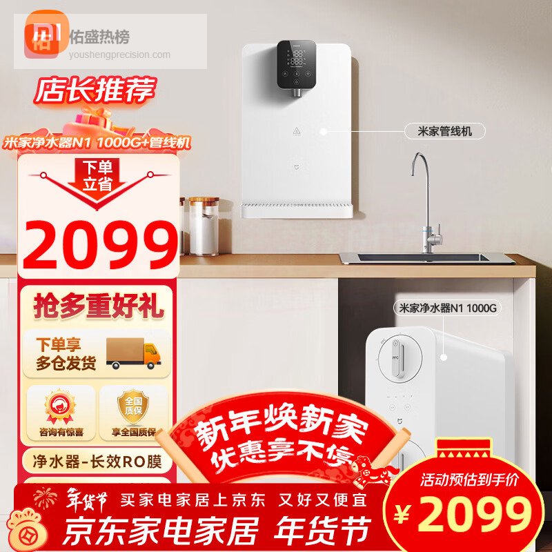 2、米家N1 1000G这款净水器采用双芯深层精滤技术,能够有效去除水中的重金属、细菌和杂质,确保饮用水的安全性。其五级过滤系统设计,尤其适合追求纯净水质的家庭,过滤效果稳定持久,使用寿命长达五年,大大减少更换频率,节省维护成本。同时,支持高精度出水,出水水质可以直接饮用,守护家人的健康。