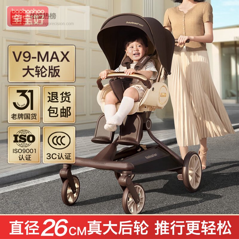 宝宝好v9max大轮版遛娃神器高景观婴儿推车0-6岁折叠可坐可躺双向溜娃车¥