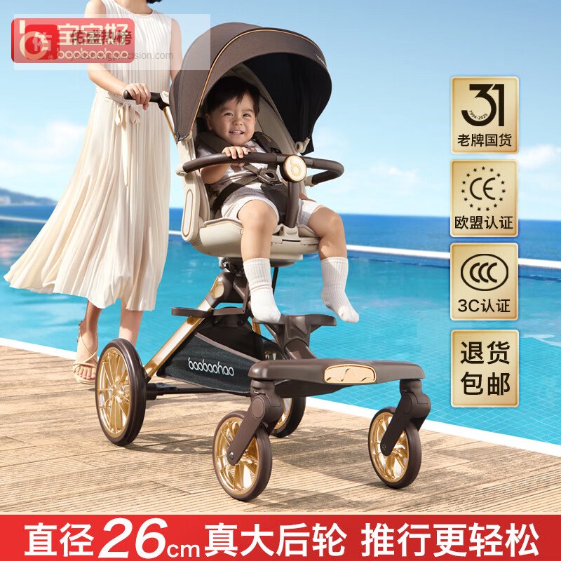 宝宝好V16MAX大轮版焦糖奶茶遛娃神器高景观双向婴儿推车可坐可躺溜娃车¥