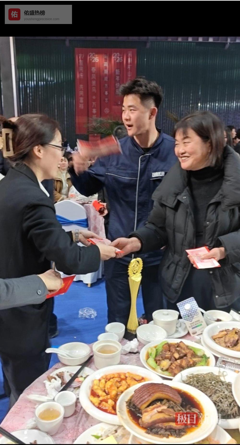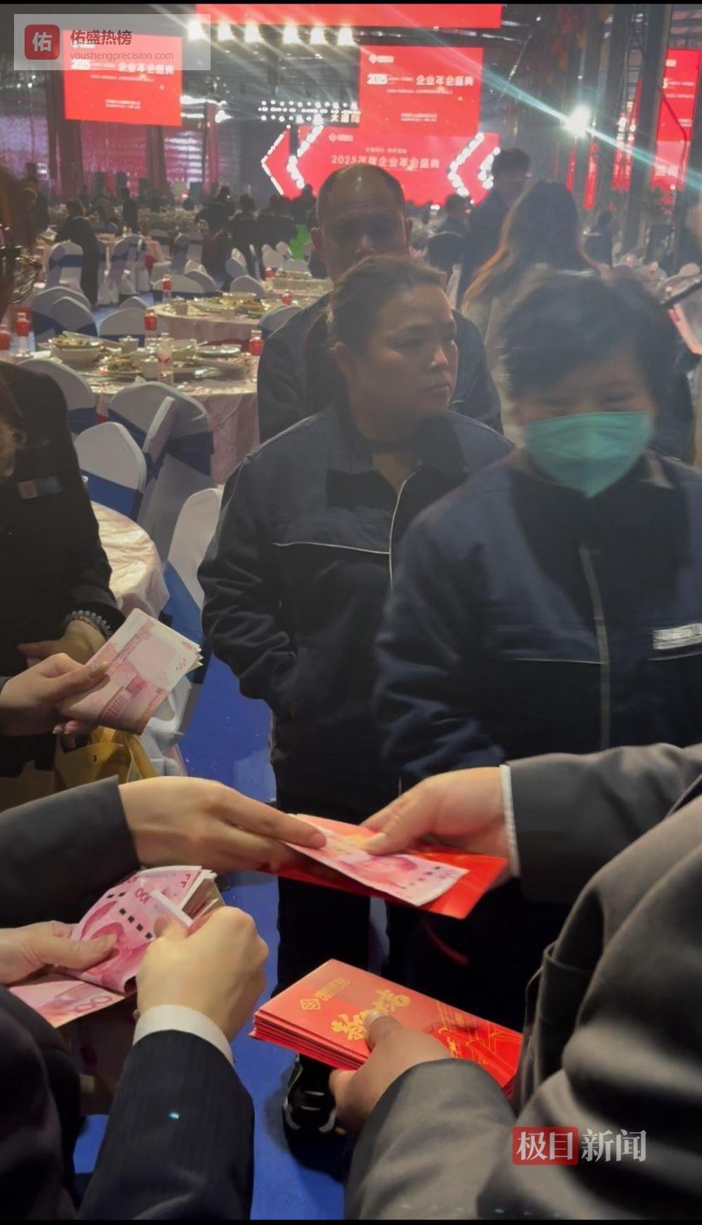 年会结束后,企业领导给员工发钱(记者实拍)