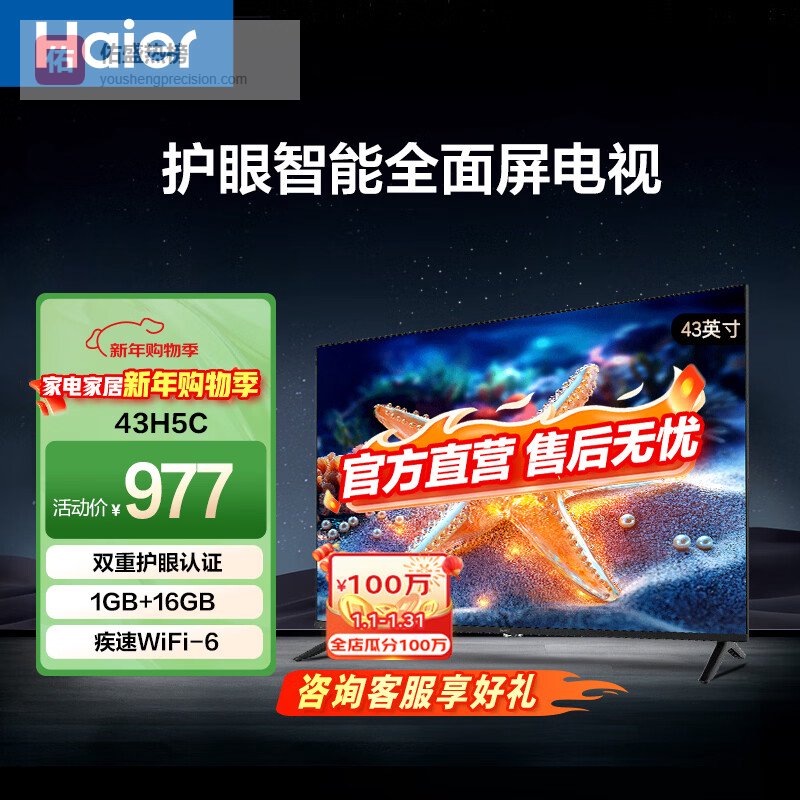 4、海尔43H5C这款平板电视配备了丰富的功能配置,支持高速Wi-Fi 6技术,传输速率比传统Wi-Fi提升50%,抗干扰能力也更强,让观影体验更加流畅。加上支持多种投屏模式,还能将手机、平板内容轻松投放到大屏上,无论是观看大片还是玩游戏,都非常方便实用。