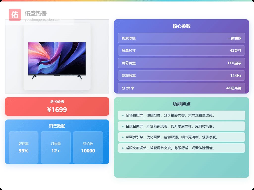 它还配备了双声道2个扬声器,输出功率达40W,结合杜比解码,能带来沉浸式的声效享受。内置AI画质优化,实现2K内容秒变4K,低分辨率也能呈现出清晰锐利的画面。运动增稳技术确保画面丝滑,无卡顿,特别适合追剧和游戏。