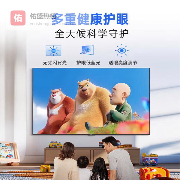 在健康护眼方面,这款电视支持无频闪背光和低蓝光护眼模式,有效缓解眼睛疲劳。并能根据不同内容智能调节亮度,提供更舒适的观看环境。配备强大的智能系统,支持语音控制、投屏和多场景操作,使用体验丰富便捷。
