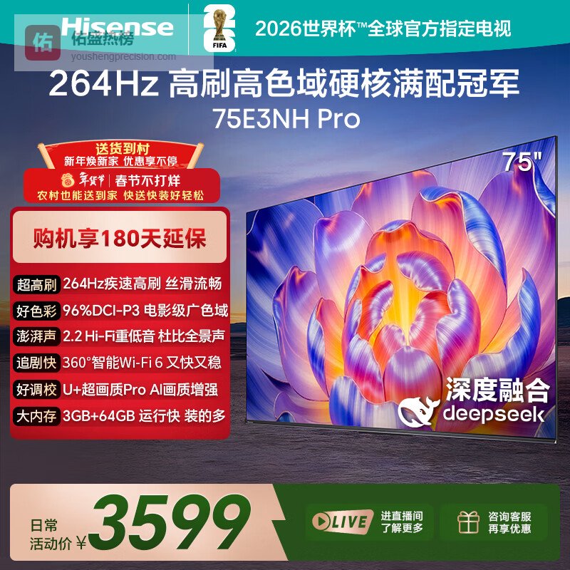 第四款:海信75E3NH Pro 75英寸电视