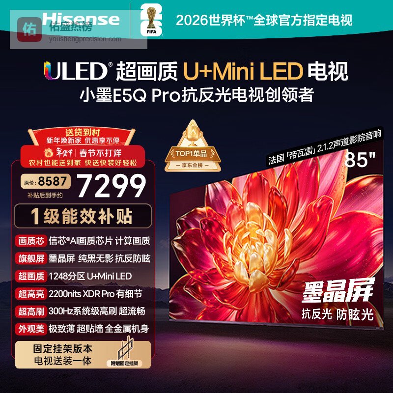 【京东自营】海信电视小墨E5QPro85英寸【送装一体-固定挂架】1248分区U+MiniLED信芯¥