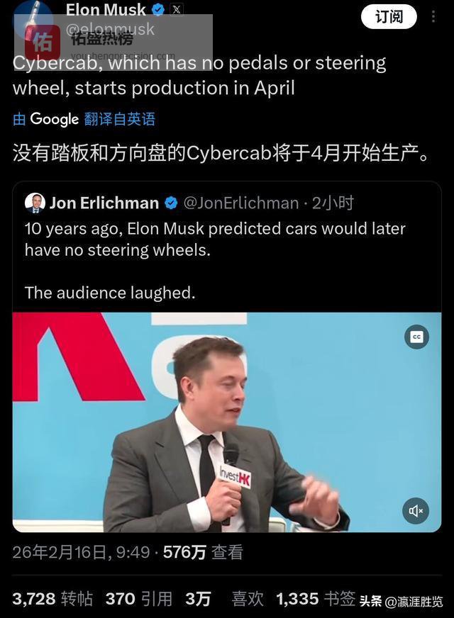 知名博主 Jon Erlichman 翻出了当年的旧账,把十年前马斯克被嘲笑的画面,和如今即将量产的消息摆在了一起。