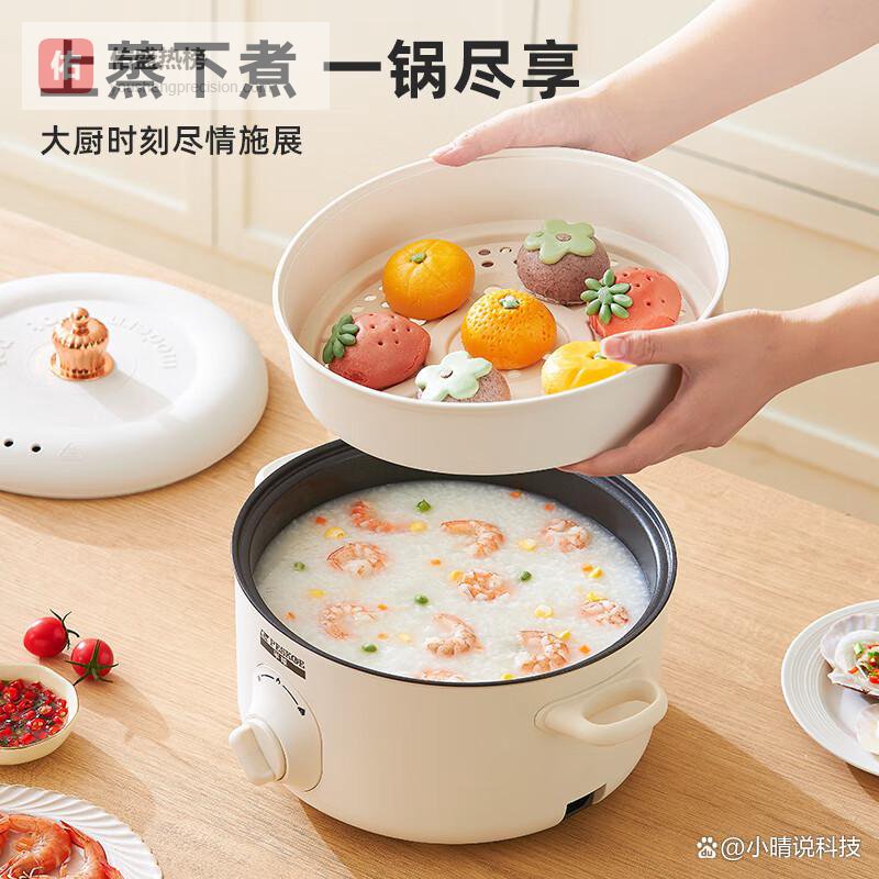 3️⃣ 智能蒸煮组合:配备的PP材质蒸笼可以实现“上蒸下煮”的双重烹饪方式,节省时间。蒸笼用料也挺安全,能同时蒸菜和煮汤,妈妈做饭更轻松。