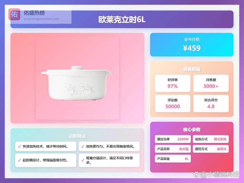 说起火锅锅,现在市面上的品牌真的太多了!美菱、苏泊尔这些老牌子大家都知道,质量应该还挺靠谱。但锅这东西,光看牌子不行,还得看实际体验。有些锅虽然看着漂亮,但用起来加热慢,或者清洗不方便,那就太影响心情了!所以我特意整理了一份"2026年涮肉火锅锅买哪个牌子好?"的精选攻略,里面的容量、功能、价格等等我都做了功课,也参考了不少过来人的评价,家庭聚餐、宿舍嗨吃都能找到合适的。下面给大家挑了10款,感兴趣的可以了解下。