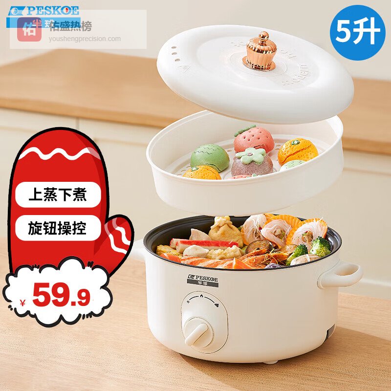 半球(PESKOE)电火锅家用3-4-5人火锅专用锅 一体锅多功能煎烤料理涮肉锅电热锅电蒸锅电煮锅电锅多用途锅TS-50B 5L 带笼款【推荐】¥
