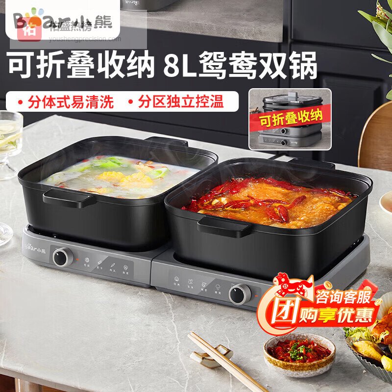小熊(Bear)叠叠锅电火锅火锅专用锅分体式鸳鸯锅6L家用电锅一体多功能锅电煮锅电热锅电炒锅涮肉锅火锅锅具 8L 【升级加大容量】DHG-E80H5¥