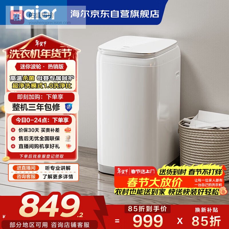 【京东自营】海尔迷你波轮全自动洗衣机3KG小型婴儿内衣洗高温除菌租房一人家用家电补贴XQBM30-R¥