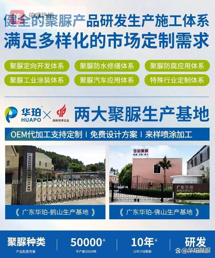 华珀聚脲华珀聚脲产品涵盖防水、防腐等多种类型