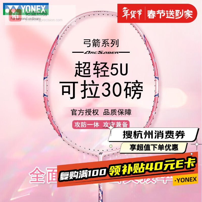 尤尼克斯(YONEX)羽毛球拍全碳素超轻5U高磅拍弓箭ARC8粉红5U 穿24磅含手胶无LOGO¥