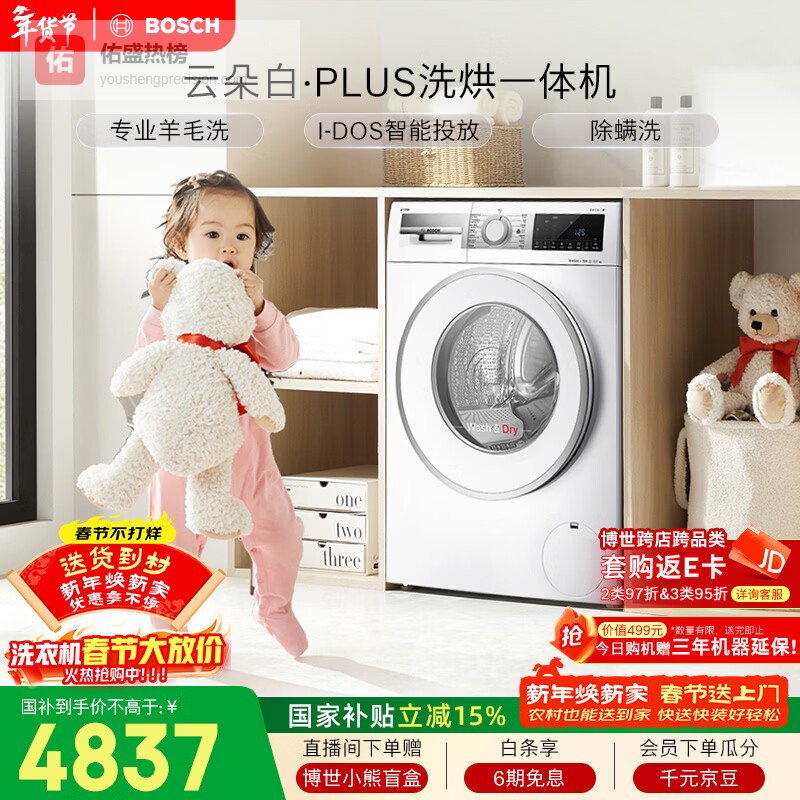 【京东自营】博世云朵白全自动i-Dos系统滚筒洗烘一体机WNE152A0AW¥