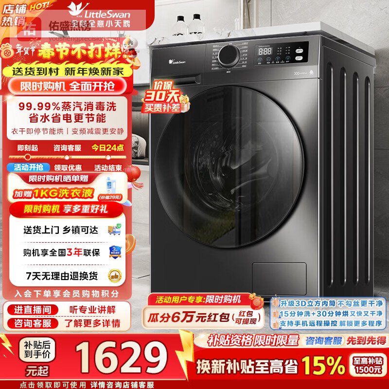 小天鹅专注于家电产品的研发,其洗烘一体机产品结合了创新科技与时尚设计。结合多种洗涤程序,小天鹅的洗烘机能够根据不同衣物类型智能调节洗涤方式,确保衣物洗净又不损伤。同时,其高效的烘干功能能够快速去除湿气,适合快节奏的生活。