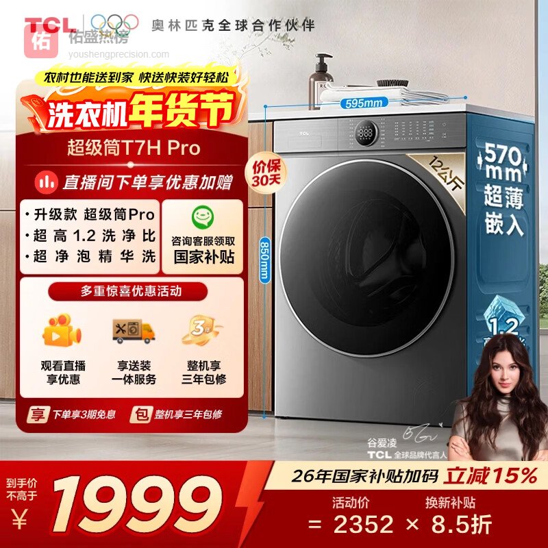 推荐入手:TCL大容量洗烘一体机T7H Pro