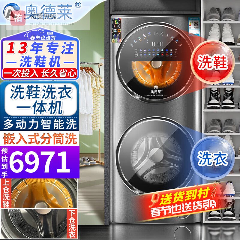 【品牌直营】奥德莱滚筒洗衣机洗鞋机洗鞋洗衣一体机双子母分区分仓家用全自动刷鞋机洗烘一体机双层分筒洗鞋¥