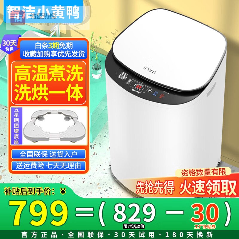 【品牌直营】智洁小黄鸭婴儿迷你洗衣机3.5kG高温煮洗全自动洗衣机宝宝小型儿童带智能烘干杀菌除螨洗烘¥