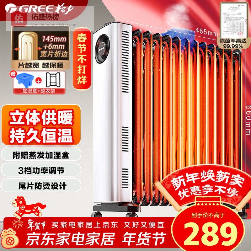 格力(GREE)【年度金榜单品】取暖器电热油汀加热电暖器立式电暖气加热器家用大面积加湿宽片 NDY23-X6022¥