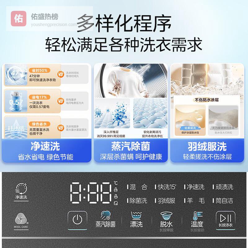 4️⃣多样化洗涤程序:可选择快洗、除螨洗等多种模式,非常适合针对不同衣物的细致需求。不管是急需干净的工作服还是娇贵的羊毛衣物,都能轻松应对。