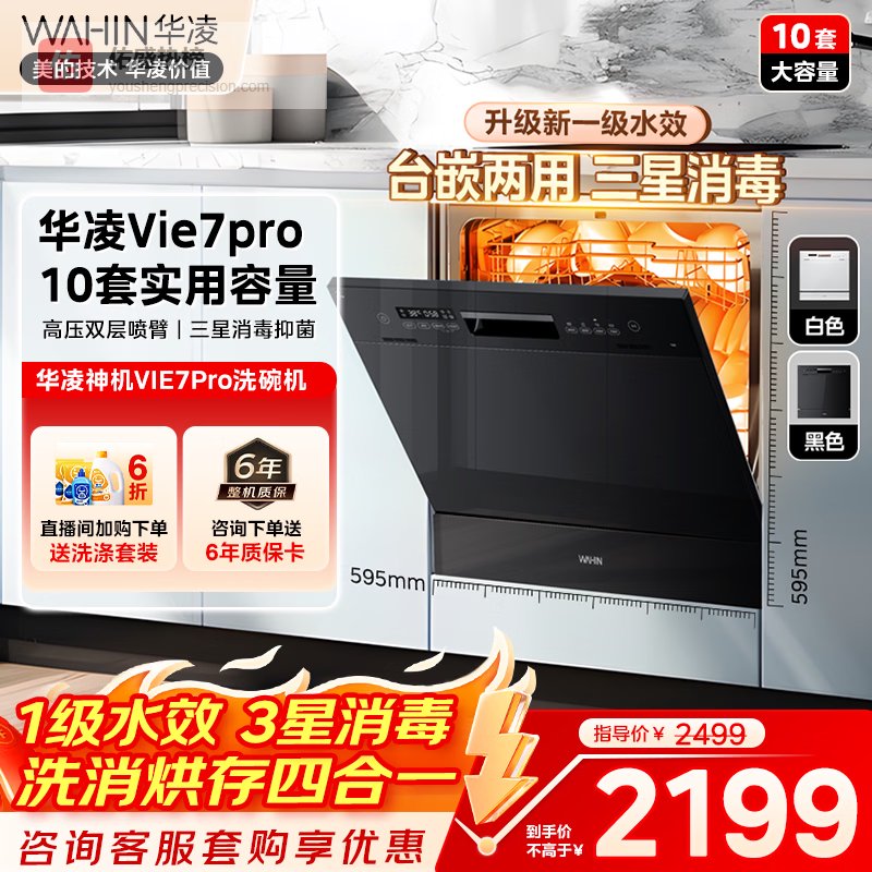 【品牌直营】华凌【Vie7Pro】洗碗机嵌入式台式两用灶下安装10套家用超一级水效热风烘干消毒洗消烘¥