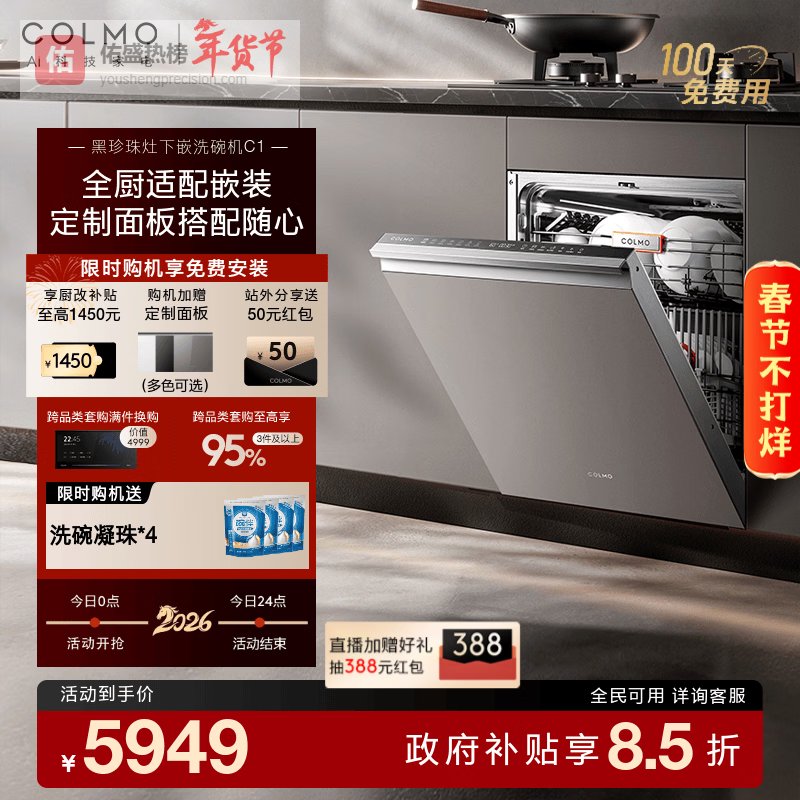 【品牌直营】COLMO黑珍珠洗碗机C1嵌入式16套灶下全自动小尺寸小户型一键单消毒离子热烘消毒一体机¥