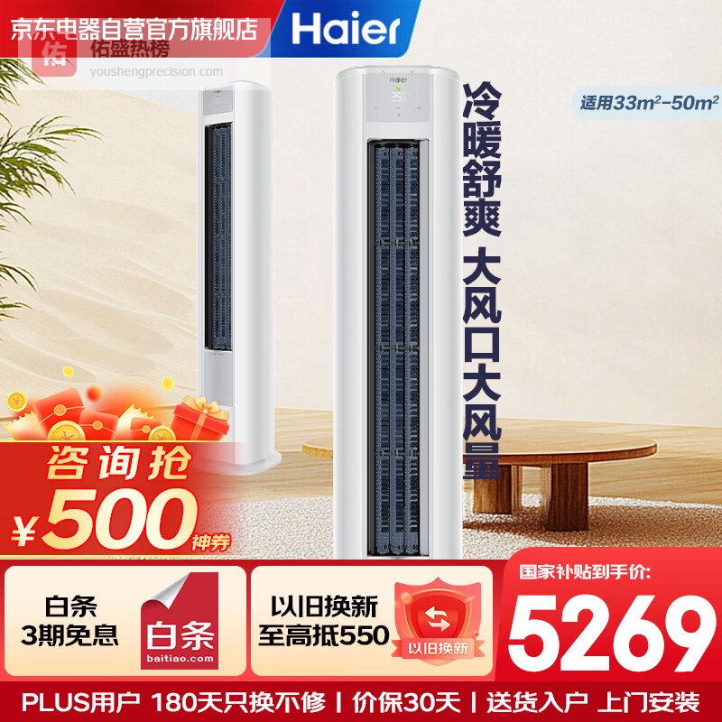 海尔空调 净省电 大3匹新一级变频冷暖客厅立式空调柜机 双排铜管 家电国家补贴以旧换新KFR-72LW/E1-1¥