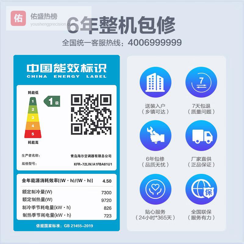 1️⃣ 超一级能效标准 APF值高达4.8,比国家一级能效标准还节能15%,获得中国能效标识最高等级认证。在同等使用条件下,电费支出可比普通机型节省25%左右。