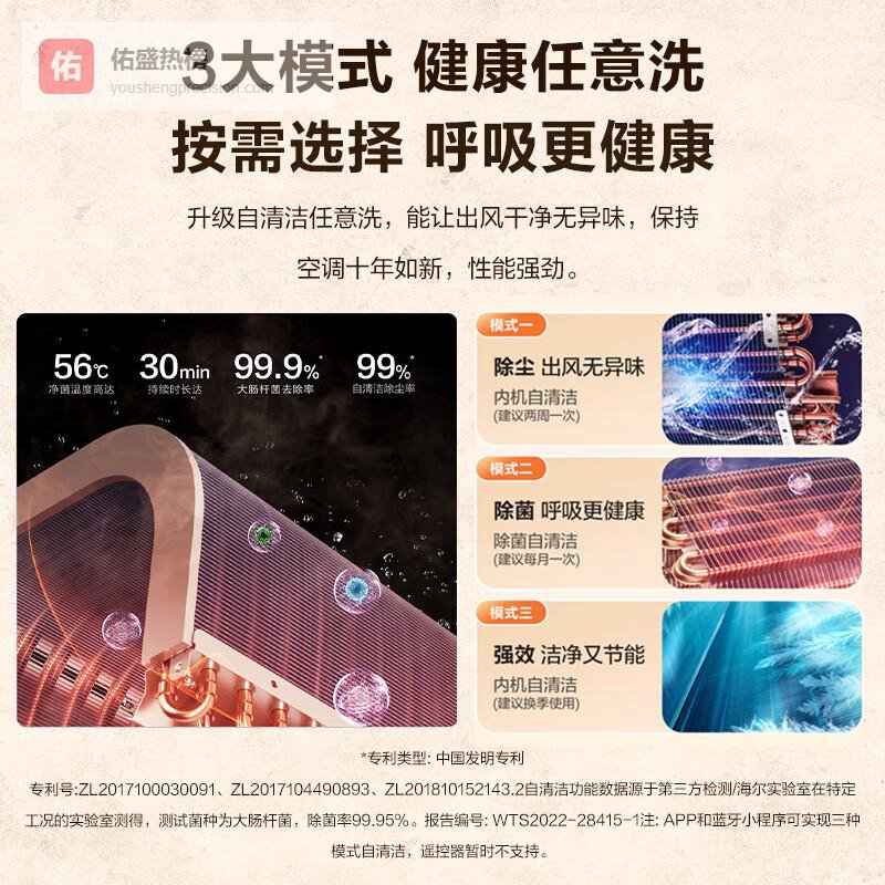 3️⃣ 智能清洁功能 内置自清洁系统,通过冷凝结霜-快速融化过程自动清洗蒸发器,有效抑制细菌滋生。特别适合过敏体质人群,减少空调病发生概率。