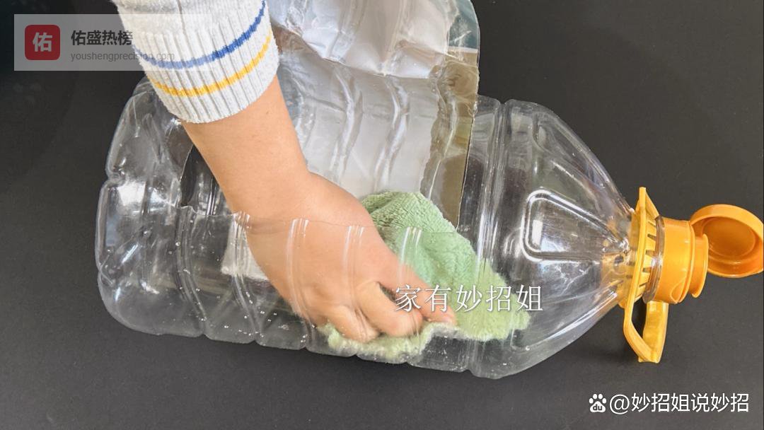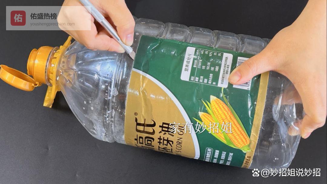 标签纸切割好,它就会有个大口子,我们再把割开的位置往外掰一掰,把这个口子给它掰得大一点,这样我们的手都可以伸到油桶的内部。要是油桶的内部还有水分、油渍的,这个时候,我们就可以拿块干净的抹布伸到油桶的内部擦一擦,把残留的油脂水分彻底的擦干。