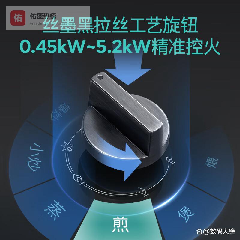 操作的便捷性使得烹饪更加轻松。通过灵活的控火设计,配合银色拉丝工艺的旋钮,用户可精准调节火力,从0.45kW到5.0kW一键即可实现,为每一次制作完美的一餐提供了无微不至的控制体验,值得每位爱厨者拥有。