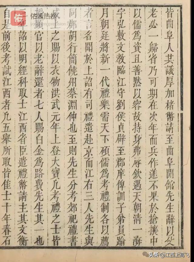 钦遇天朝清一海宇,弘敷文教。临江守刘侯贞辟至郡庠,俾训子弟员。逾月,朝廷将新一代礼乐,需天下硕儒为考礼制,各以荐者言名闻于上,诏有司礼遣赴京。而江右三人,先生与同郡胡行简、饶州蔡渊仲也。至则先生分考郊祀礼,书成上之,赐以衣物。