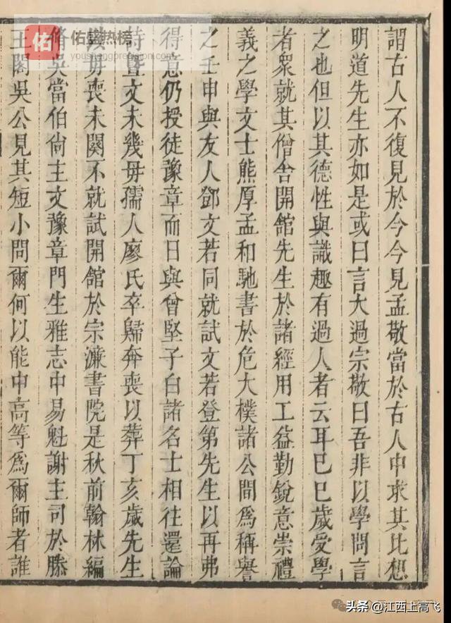 泰定甲子岁,继闻前国子博士、儒学提举损斋刘公有庆博赡老成,乃提所作文字凡十篇,偕书以见。公称赏曰:“真韩苏之才也。”为荐馆于南昌之富家邓氏、姜氏,所贮书籍靡不有之,先生悉为点阅,文学益为之进。尝与杨宗敬、揭鲁山定交。一日,会文士六七辈同坐,宗敬曰:“吾尝谓古人不复见于今,今见孟敬,当于古人中求其比,想明道先生亦如是。”或曰:“言太过。”宗敬曰:“吾非以学问言之也,但以其德性与识趣有过人者云耳。”