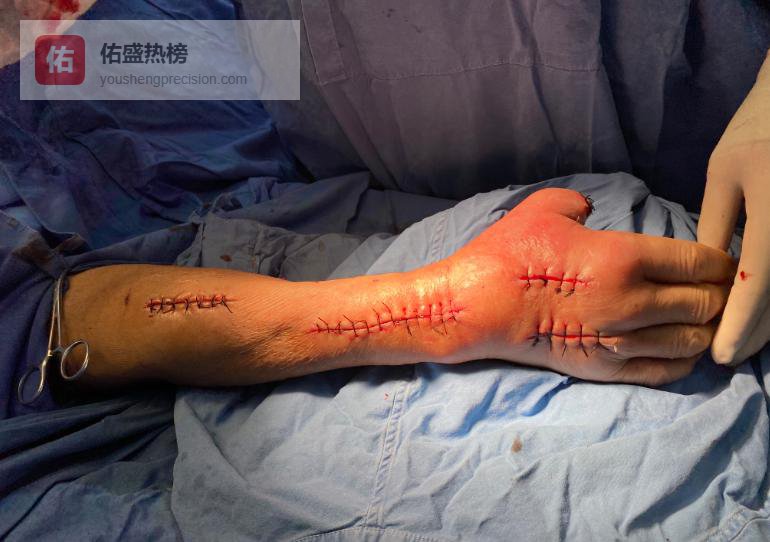 傍晚 5 点,医生局麻切开减压;晚上 7 点,他烦躁不安,心率飙升;22 点,意识模糊,右上肢红肿蔓延至肩部。家属签字后, 右拇指远节被紧急截除。