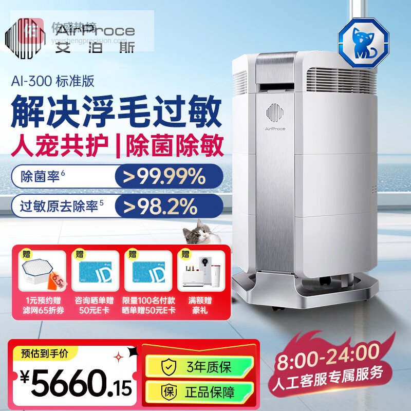 【品牌直营】艾泊斯空气净化器家用卧室除过敏原除甲醛雾霾除猫毛宠物异味除粉尘猫用净化器AI-300AI¥