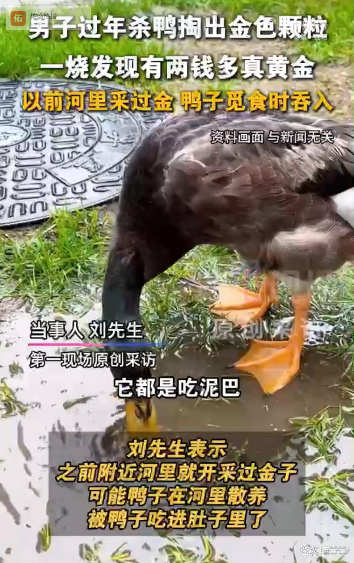 这事儿听起来玄乎,其实还真有科学依据。刘先生家的鸭子是在村边河里散养的,那条河早些年有过金矿开采历史,河床里残留着细小的金粒。