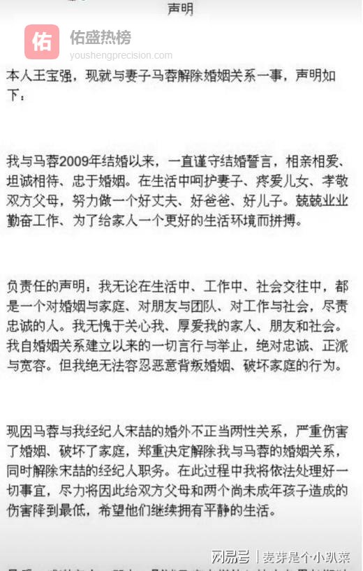 声明内容直接点明:马蓉与经纪人宋喆存在不正当男女关系,同时涉及财产方面的经济纠纷,王宝强宣布离婚并解除与宋喆的合作关系。